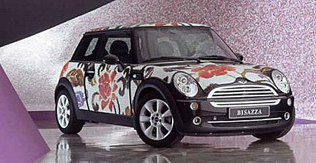 Одним из рекламно-маркетинговых ходов компании стал отделанный узорами из стеклянной мозаики серии Opus romano Mini Cooper: теперь мозаикой отделывают все любые криволинейные поверхности, пластик, металл! Современная строительная химия позволяет это.