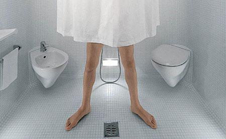Пример применения растяжки в ванной комнате.