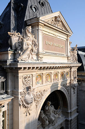 Мозаичные медальоны на фасаде Парижского банка.