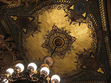 Интерьер Большой Парижской оперы стал первым во Франции нового времени интерьером, отделанным мозаикой. Он украшен как потолочными смальтовыми мозаиками, так и напольными орнаментальными мозаиками из натурального камня.