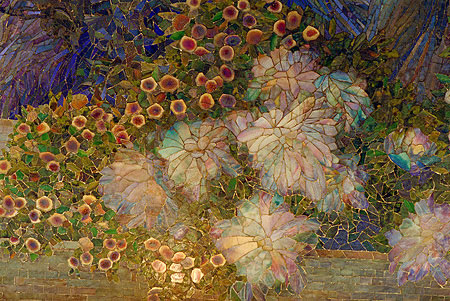 В развитие своей работы с т.н. «фаврильным» цветным стеклом, Тиффани начинает практиковать его применение в качестве материала для мозаичных панно.