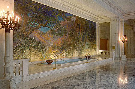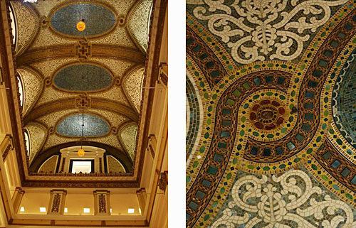 Его сводчатый потолок, перекрывающий все здание, был отделан мозаикой Студии Тиффани.